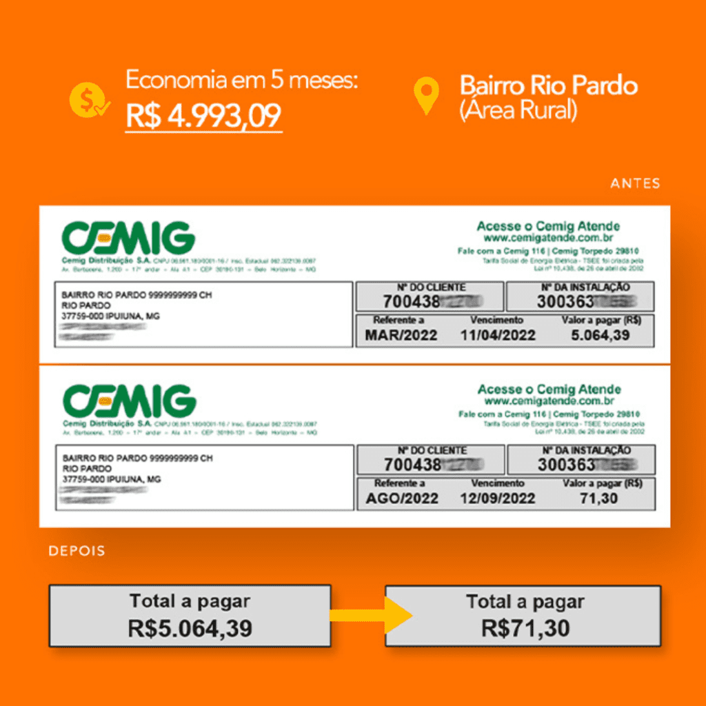 Você economizará em até 95% na conta de energia da sua casa ou empresa e não se preocupará com reajustes e bandeiras tarifárias.